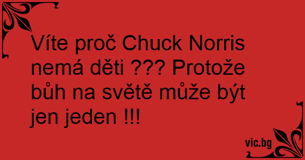 Víte proč Chuck Norris nemá děti ??? Protože bůh na světě může být jen jeden !!!