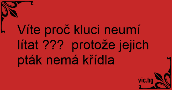 Víte proč kluci neumí lítat ??? protože jejich pták nemá křídla