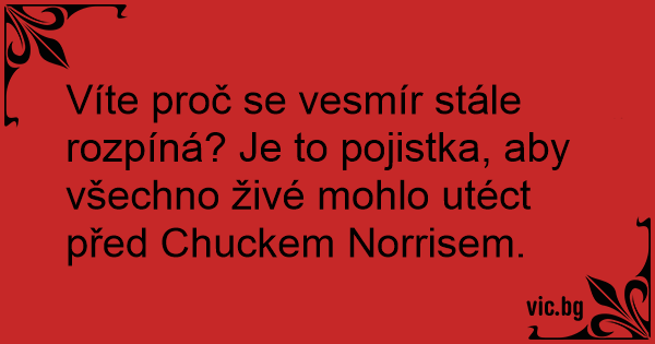Víte proč se vesmír stále rozpíná? Je to pojistka, aby všechno živé mohlo utéct před Chuckem Norrisem.