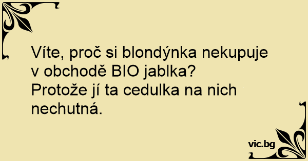 Víte, proč si blondýnka nekupuje v obchodě BIO jablka?