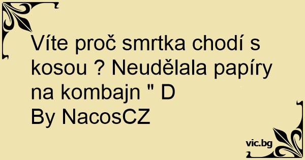 Víte proč smrtka chodí s kosou ? Neudělala papíry na kombajn " D