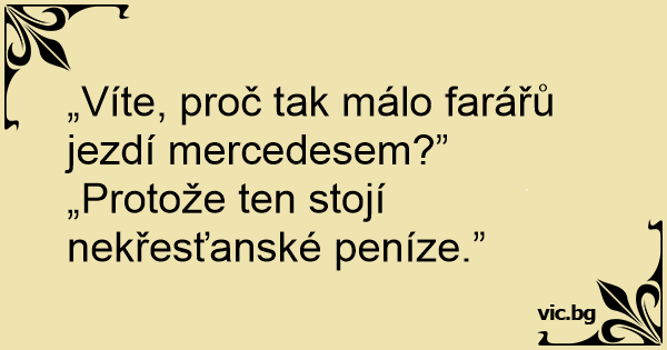 „Víte, proč tak málo farářů jezdí mercedesem?”