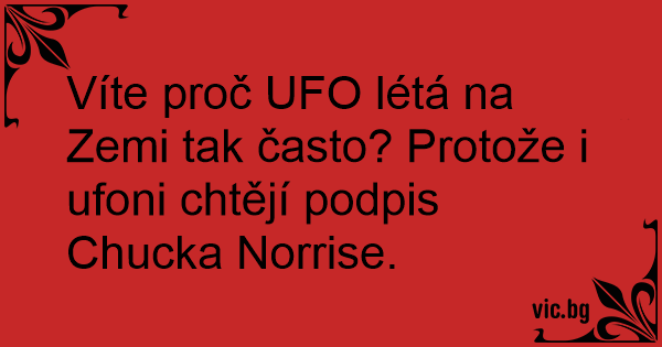 Víte proč UFO létá na Zemi tak často? Protože i ufoni chtějí podpis Chucka Norrise.