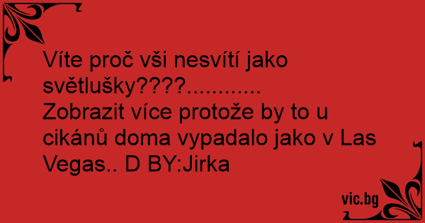 Víte proč vši nesvítí jako světlušky????............ Zobrazit více protože by to u cikánů doma vypadalo jako v Las Vegas.. D BY:Jirka