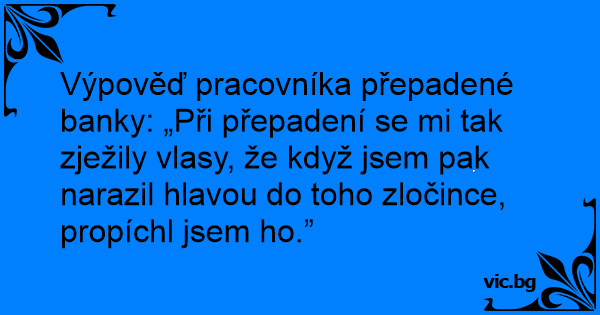 Výpověď pracovníka přepadené banky: „Při přepadení se mi tak zježily vlasy, že když jsem pak narazil hlavou do toho zločince, propíchl jsem hо.”