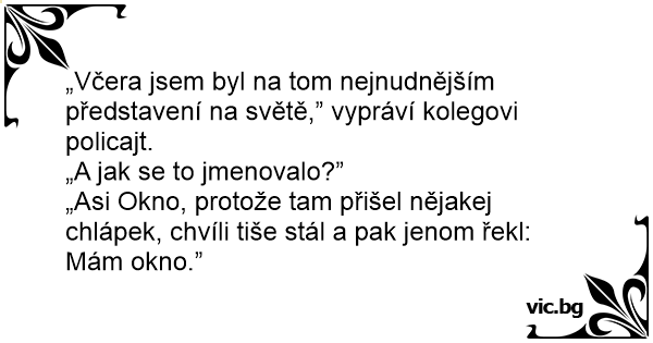„Asi Okno, protože tam přišel nějakej chlápek, chvíli tiše stál a pak jenom řekl: Mám okno.”
