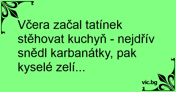 Včera začal tatínek stěhovat kuchyň - nejdřív snědl karbanátky, pak kyselé zelí...