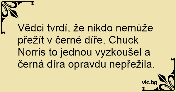 Vědci tvrdí, že nikdo nemůže přežít v černé díře. Chuck Norris to jednou vyzkoušel a černá díra opravdu nepřežila.