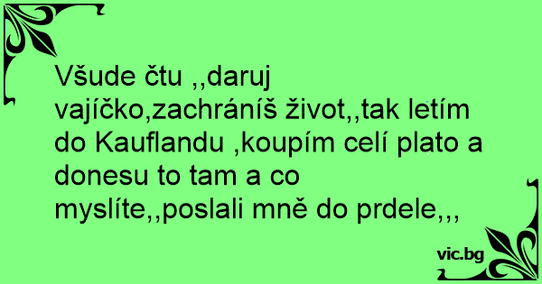 Všude čtu ,,daruj vajíčko,zachráníš život,,tak letím do Kauflandu ,koupím celí plato a donesu to tam a co myslíte,,poslali mně do prdele,,,