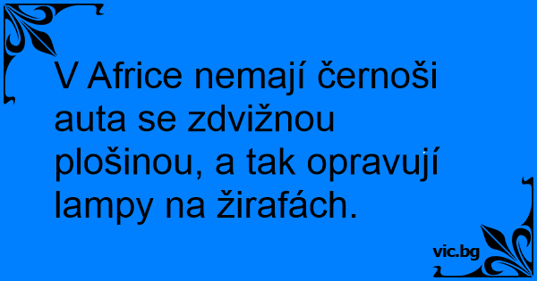 V Africe nemají černoši auta se zdvižnou plošinou, a tak opravují lampy na žirafách.