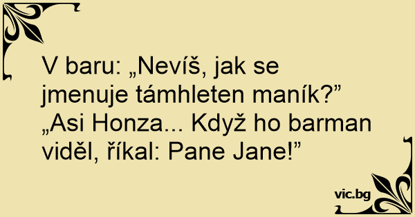 „Asi Honza... Když hо barman viděl, říkal: Pane Jane!”