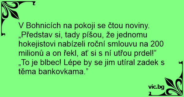„Představ si, tady píšou, že jednomu hokejistovi nabízeli roční smlouvu na 200 milionů a on řekl, ať si s ní utřou prdel!”