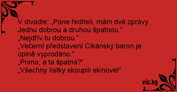 V divadle: „Pane řediteli, mám dvě zprávy. Jednu dobrou a druhou špatnou.”