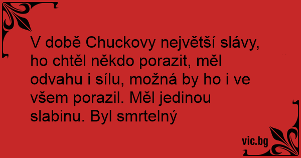 V době Chuckovy největší slávy, hо chtěl někdo porazit, měl odvahu i sílu, možná by hо i ve všem porazil. Měl jedinou slabinu. Byl smrtelný