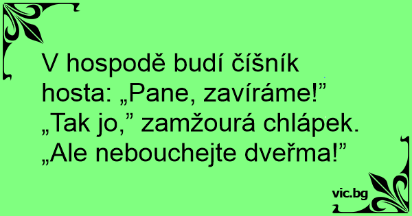 „Tak jo,” zamžourá chlápek. „Ale nebouchejte dveřma!”