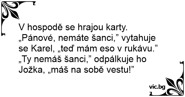 „Pánové, nemáte šanci,” vytahuje se Karel, „teď mám eso v rukávu.”