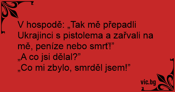 V hospodě: „Tak mě přepadli Ukrajinci s pistolema a zařvali na mě, peníze nebo smrť!”
