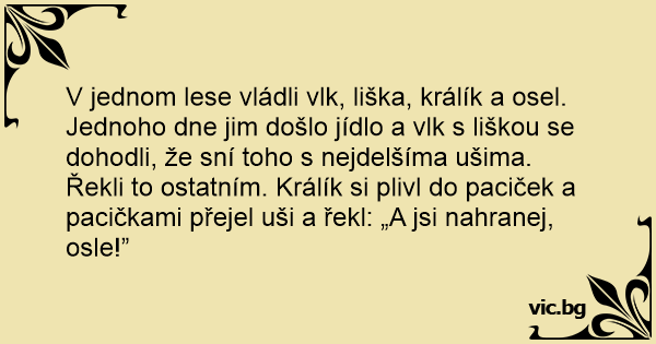 Řekli to ostatním. Králík si plivl do paciček a pacičkami přejel uši a řekl: „A jsi nahranej, osle!”