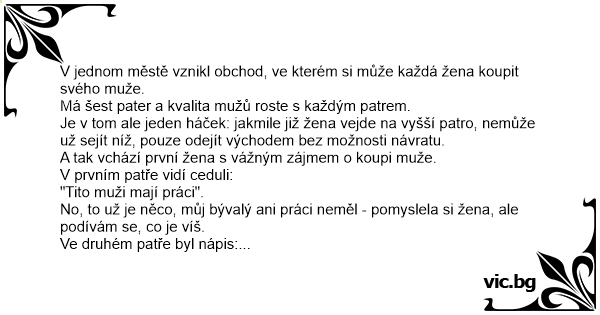 No to je neuvěřitelné, přímo zázrak - pomyslela si žena – ale když to je tak skvělé tady, co musí být o patro výš!?!