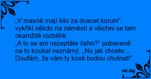 „V masně mají kilo za dvacet korun!” vykřikl někdo na náměstí a všichni se tam okamžitě rozběhli.
