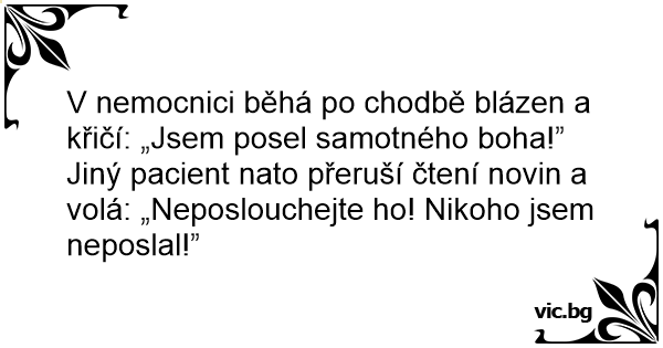 V nemocnici běhá po chodbě blázen a křičí: „Jsem posel samotného boha!”