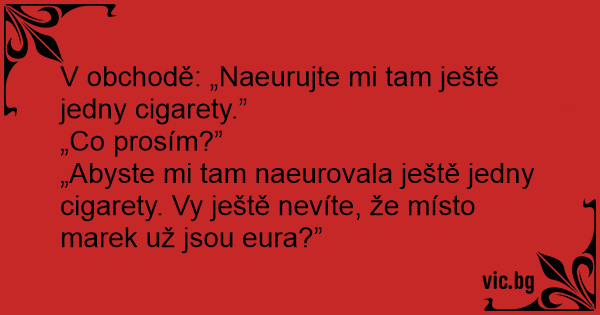 „Abyste mi tam naeurovala ještě jedny cigarety. Vy ještě nevíte, že místo marek už jsou eura?”