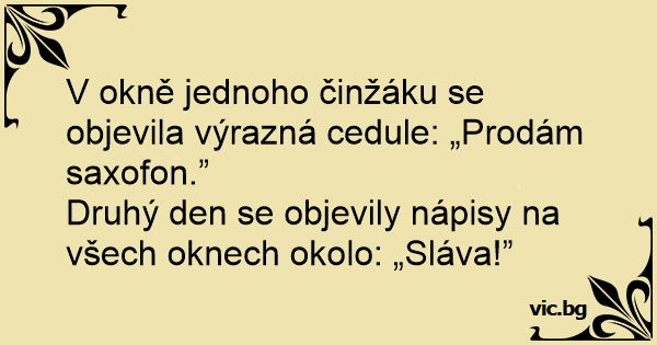 V okně jednoho činžáku se objevila výrazná cedule: „Prodám saxofon.”