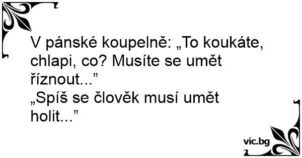 V pánské koupelně: „To koukáte, chlapi, co? Musíte se umět říznout...”