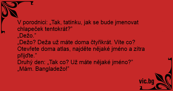 V porodnici: „Tak, tatínku, jak se bude jmenovat chlapeček tentokrát?”