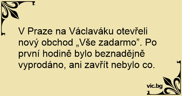 V Praze na Václaváku otevřeli nový obchod „Vše zadarmo”. Po první hodině bylo beznadějně vyprodáno, ani zavřít nebylo co.