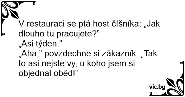 „Aha,” povzdechne si zákazník. „Tak to asi nejste vy, u koho jsem si objednal oběd!”