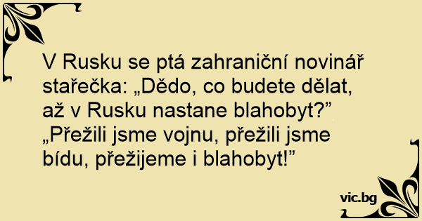 V Rusku se ptá zahraniční novinář stařečka: „Dědo, co budete dělat, až v Rusku nastane blahobyt?”