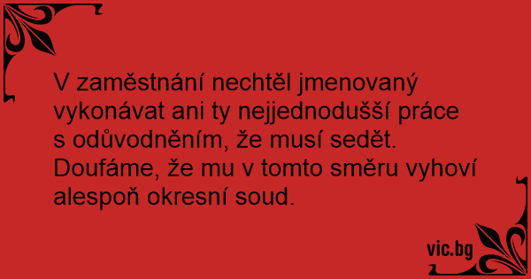 V zaměstnání nechtěl jmenovaný vykonávat ani ty nejjednodušší práce s odůvodněním, že musí sedět. Doufáme, že mu v tomto směru vyhoví alespoň okresní soud.