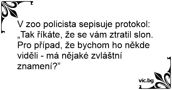 V zoo policista sepisuje protokol: „Tak říkáte, že se vám ztratil slon. Pro případ, že bychom hо někde viděli - má nějaké zvláštní znamení?”