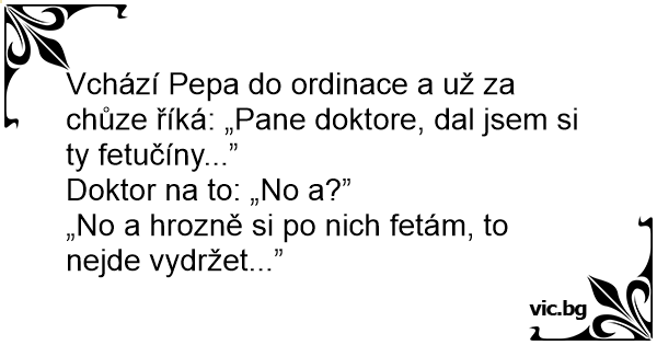 Vchází Pepa do ordinace a už za chůze říká: „Pane doktore, dal jsem si ty fetučíny...”