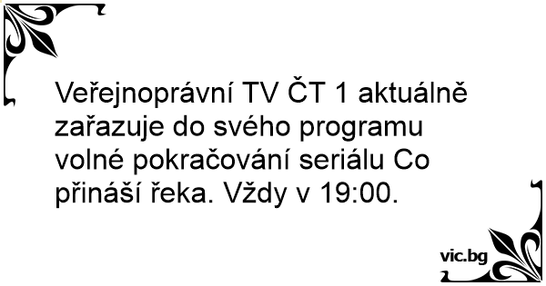 Veřejnoprávní TV ČT 1 aktuálně zařazuje do svého programu volné pokračování seriálu Co přináší řeka. Vždy v 19:00.