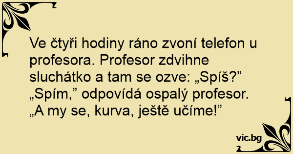 Ve čtyři hodiny ráno zvoní telefon u profesora. Profesor zdvihne sluchátko a tam se ozve: „Spíš?”