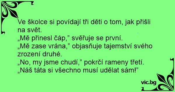„Mě přinesl čáp,” svěřuje se první.