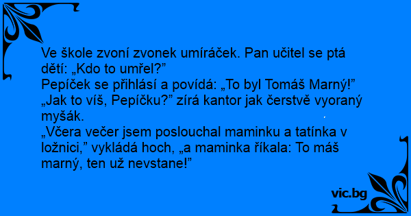 Pepíček se přihlásí a povídá: „To byl Tomáš Marný!”