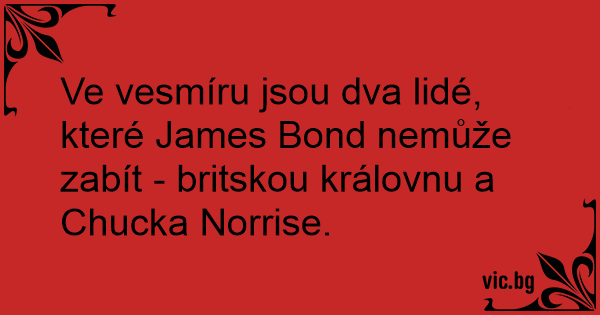 Ve vesmíru jsou dva lidé, které James Bond nemůže zabít - britskou královnu a Chucka Norrise.