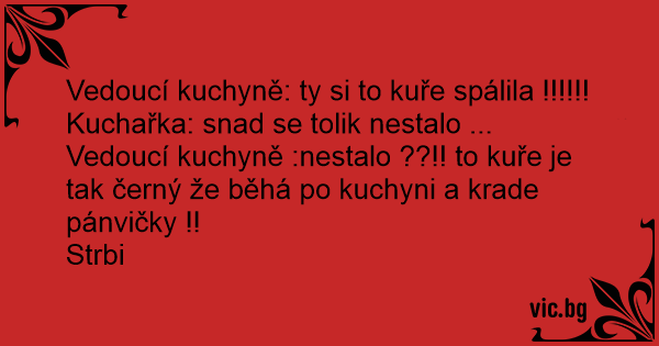 Vedoucí kuchyně: ty si to kuře spálila !!!!!!