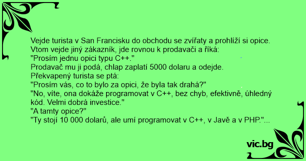 "Ty stojí 10 000 dolarů, ale umí programovat v C++, v Javě a v PHP."
