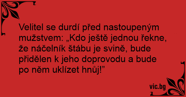 Velitel se durdí před nastoupeným mužstvem: „Kdo ještě jednou řekne, že náčelník štábu je svině, bude přidělen k jeho doprovodu a bude po něm uklízet hnůj!”