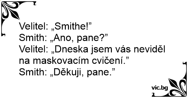 Velitel: „Dneska jsem vás neviděl na maskovacím cvičení.”