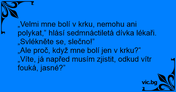 „Velmi mne bolí v krku,...