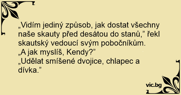 „Vidím jediný způsob, jak dostat všechny naše skauty před desátou do stanů,” řekl skautský vedoucí svým pobočníkům.