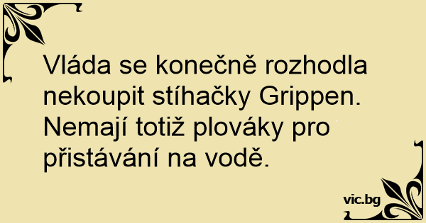 Vláda se konečně rozhodla nekoupit stíhačky Grippen. Nemají totiž plováky pro přistávání na vodě.