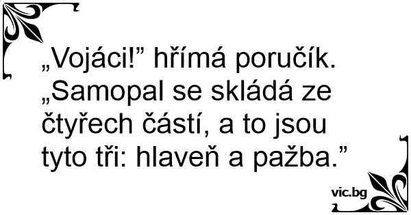 „Vojáci!” hřímá poručík....