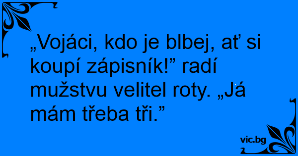 „Vojáci, kdo je blbej, ať si koupí zápisník!” radí mužstvu velitel roty. „Já mám třeba tři.”