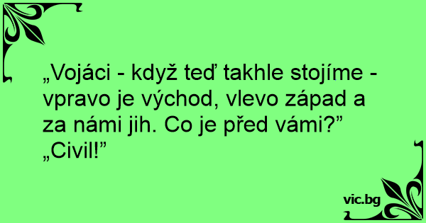 „Vojáci - když teď takhle stojíme - vpravo je východ, vlevo západ a za námi jih. Co je před vámi?”